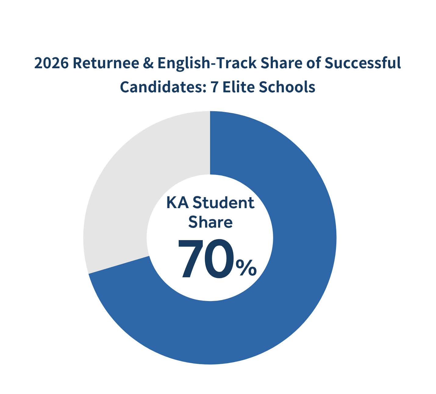 Across seven major competitive schools, 300 of the 439 successful applicants in the relevant admissions categories were KA students, representing a 68% share.