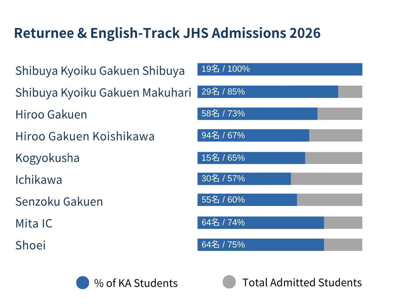 Kikokushijo Academy (KA), an educational institution for returnee students and highly proficient English learners, recorded a high share of successful applicants in returnee and English-based entrance examinations at major competitive junior high schools in the Tokyo metropolitan area for the 2026 admissions cycle.